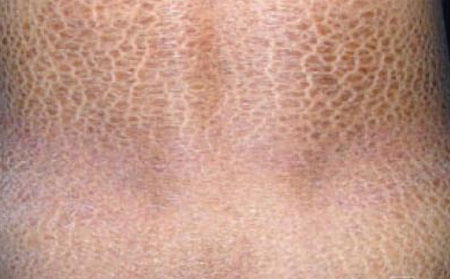 鱼鳞病是一种以皮肤干燥伴有鱼鳞状鳞屑为特征的遗传性皮肤病,鱼鳞病通常无自觉症状,皮损在冬季寒冷干燥季节加重,在潮湿温暖的夏季减轻。皮肤干燥时瘙痒不适,发生皲裂时则感疼痛,皮损随年龄长而加重,青春期后,由于皮脂腺、汗腺分泌增多,症状可减轻,患者常有家族遗传史,自幼发病,持续终身。