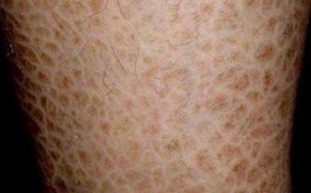 鱼鳞病是一种遗传性角化性皮肤病,四肢和躯干症状。干燥和粗糙的面包屑和症状的形成,如鳞的蛇皮或外观。严重者皮肤破裂,出汗不正常,使机体代谢失衡。这病是先天性鱼鳞病,如果不及时治疗,这种疾病可以导致后代的遗传疾病,及时治疗是非常必要的。